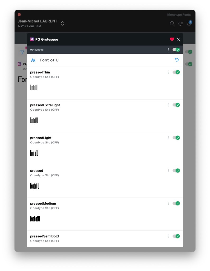 Une fois que le compte est créé vous allez via votre navigateur naviguer dans les nombreuses fontes disponibles. Vous pouvez aussi télécharger l’application Monotype Desktop App qui est assez limitée.