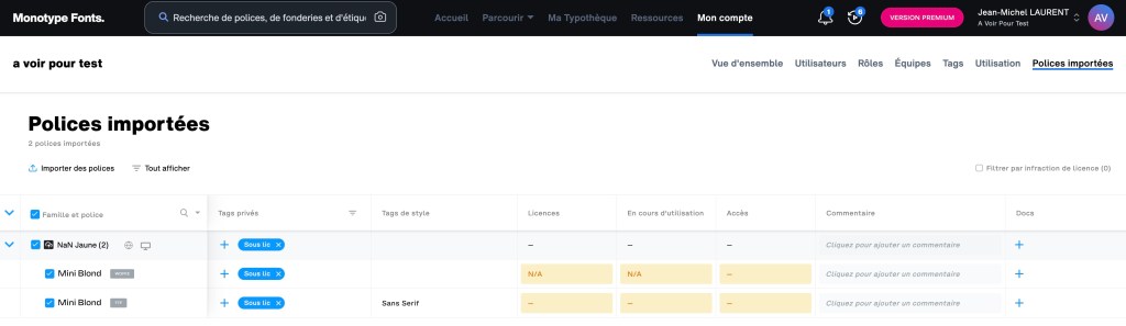 La sélection et l’ajout de polices est assez aisé. L’ajout de mes propres polices sous licence est aussi assez facile, le seul problème réside dans la gestion des licences des fontes que je possède déjà. Monotype ne me demande que de cocher une case pour dire que je suis bien sous licence. Je n’ai pas besoin de rentrer ma facture ou mon CLUF pour valider cette étape et ça c’est bien dommage surtout de la part de Monotype qui aurait pu me demander la facture pour valider et vérifier les licences de mes polices. Je peux cependant rajouter une document mais sans validation autre que la mienne.