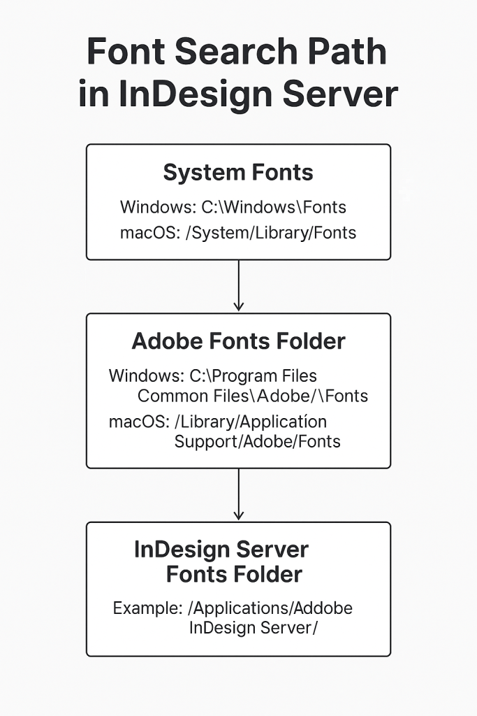 InDesign Server lit les polices installées dans trois types d’emplacements :